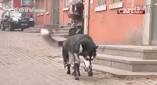 Perro vuelve a caminar gracias a protesis. Da Hei es un perro de raza husky, tiene 7 años y perdió sus 4 patas a causa del cruel maltrato que sufrió, pero gracias al buen corazón de un veterinario que lo adopto y cuido, este lindo can ha vuelto a caminar.
