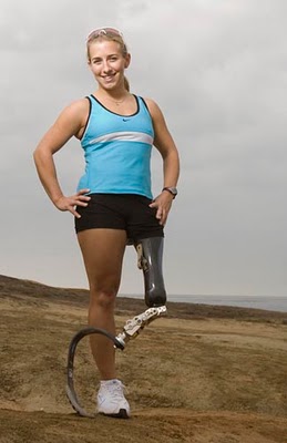 Su nombre es Sarah Reinertsen, debido a una deficiencia congénita no hereditaria, su pierna nunca alcanzaría el mismo desarrollo que el resto de su cuerpo.